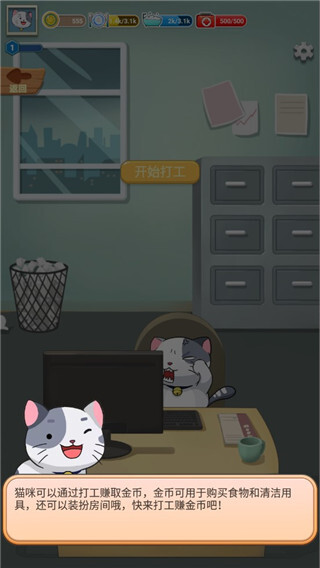 5、你还可以让你的宠物进行打工获取金币,用于购买食物和清洁用具,还可以装扮你的房间;