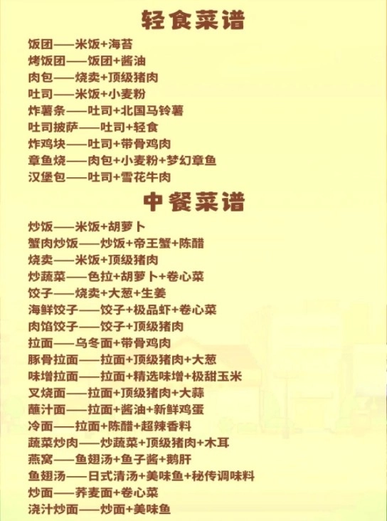 5、每道菜品依据自身的风味特点与所属品类,都存在最适配的强化食材,这部分内容需要大家在日常实践中慢慢积累和摸索,在此仅列举一些较为通用的例子供大家参考。