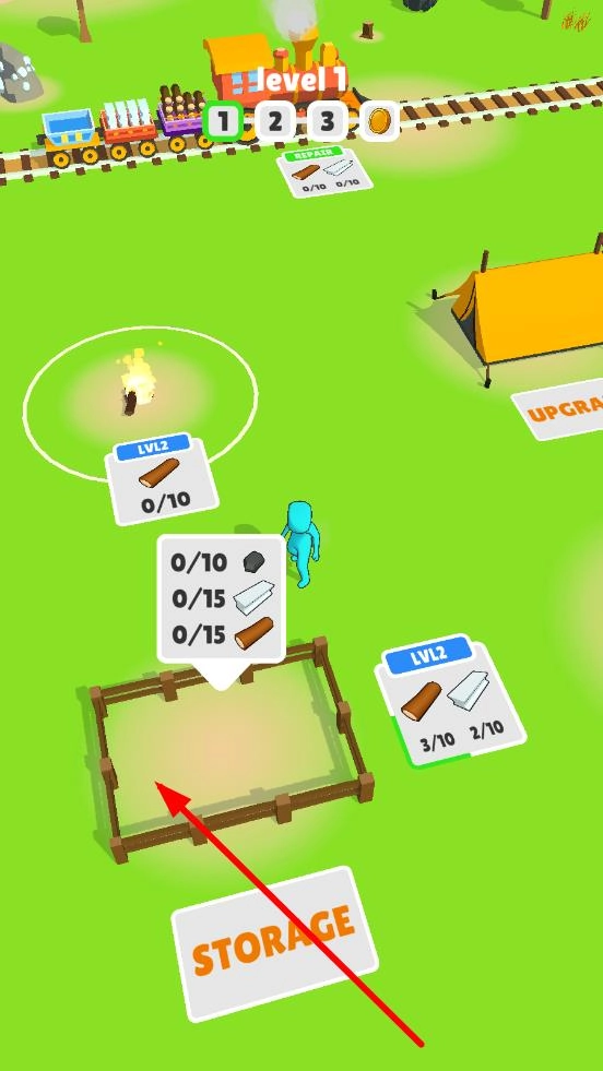 关卡成长脉络清晰:从level1阶段的基础资源采集起步,逐步推进到营地功能的拓展升级、火车运力的强化提升,每个关卡都有明确的目标指引,成长路径直观可见,能持续吸引玩家不断推进游戏进程。
