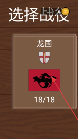 在游戏主场景里,按照红色箭头指示的方向,选择龙国战役,开启游戏任务。