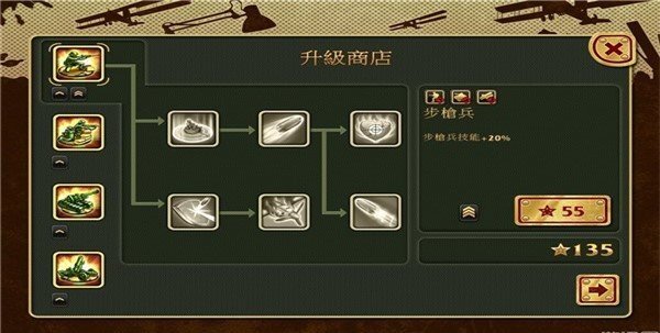推荐大部分大兵都升到三道杠或一星级,保证最高性价比。一般前期关卡都是大兵人海,后期关卡主要输出是喷火小分队,喷火小分队的等级一定要尽量提到高节点,一般一路放两个就够用。这样的火力,基本保证,除了坦克以外,其他单位都通不过。而坦克有我方坦克在后面补刀。