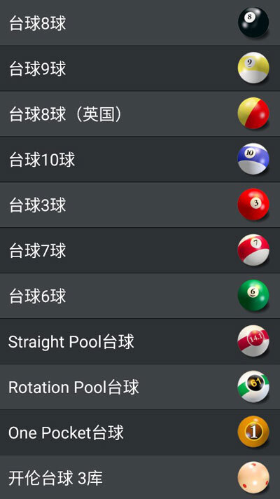 2、不同台球规则中任意选择一个你熟悉或者想要玩的;