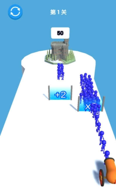 2、 操控角色在遍布障碍的赛道上保持自动奔跑状态,借助精准的左右移动操作来提升人数规模。