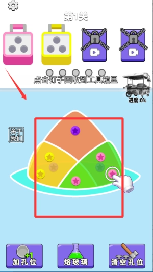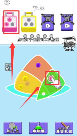 进入关卡后,先仔细观察方块与螺丝的分布状况,找出能够优先拔除的位置。要留意颜色分类,按照顺序把方块放进对应的收纳盒里,以此完成消除。