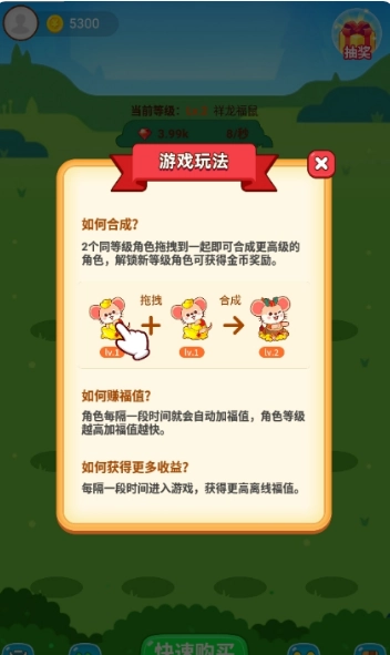 2、鼠鼠合成玩法:把不同的鼠鼠进行合成,合成的级别越高,能获得的奖励就越多。