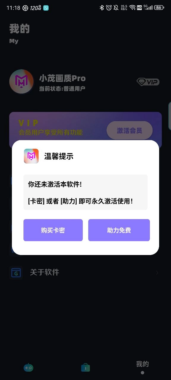 首先,启动小茂画质助手软件,点击界面右上角的“激活”按钮,随即会弹出激活页面。