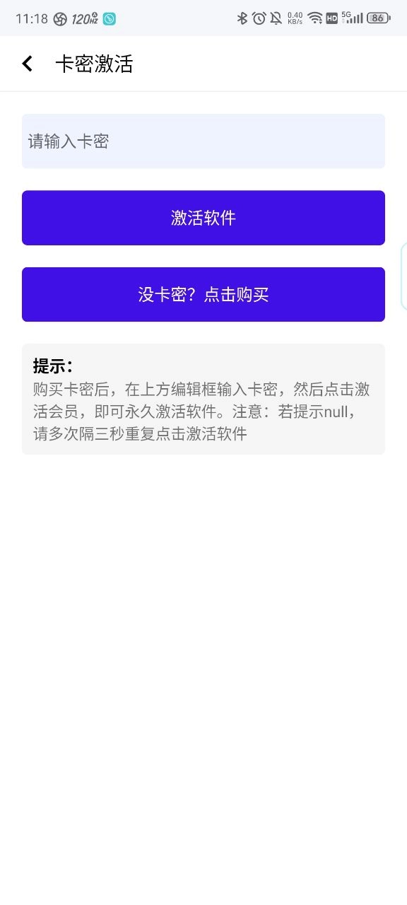 购买成功后,把卡密粘贴到对应的位置,进行激活。