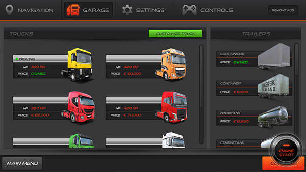 (3)持续完成任务,提升等级,逐步解锁更多高性能卡车和挂车。