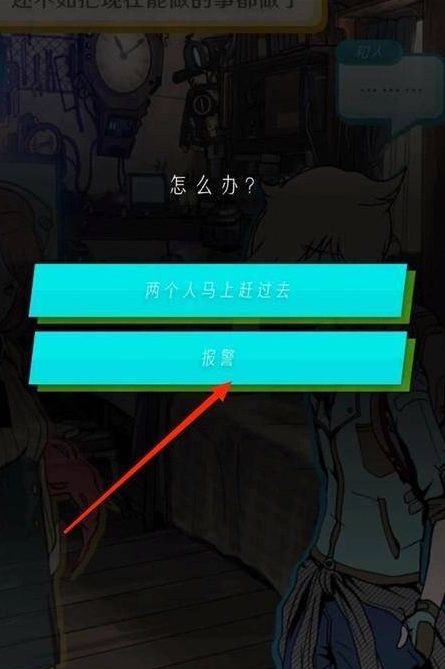 4、第二个选择是在章节临近结束、出现“怎么办”的提问时,选择“报警”,如此一来,第一章的剧情便基本完成通关。