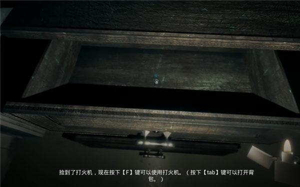 4、使用打火机来到这个柜子这里,来获得第二个道具,抽屉的钥匙。