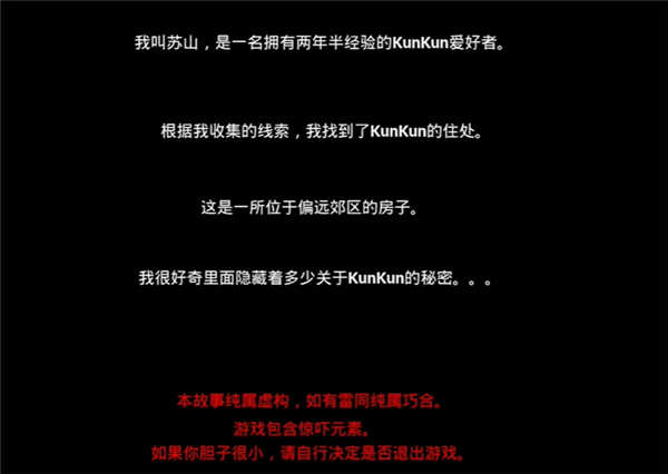 坤坤之家游戏手机版是一款鬼畜恐怖解谜游戏,游戏以第一人称为视角,在这里,玩家将扮演 KunKun 爱好者潜入疑似偶像的住所探险,以心理惊悚为主,搭配追逐战、突脸惊吓等恐怖玩法,但通过鬼畜动作、搞笑音效和梗元素降低恐怖感,快下载试试吧!