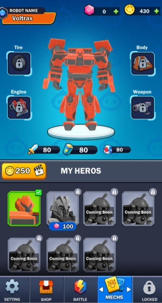 玩家在游戏过程中获取的钻石,能够用于车库系统解锁造型与技能各不相同的全新机甲,从而获得更为多样的驾驶操作与战斗对抗体验。
