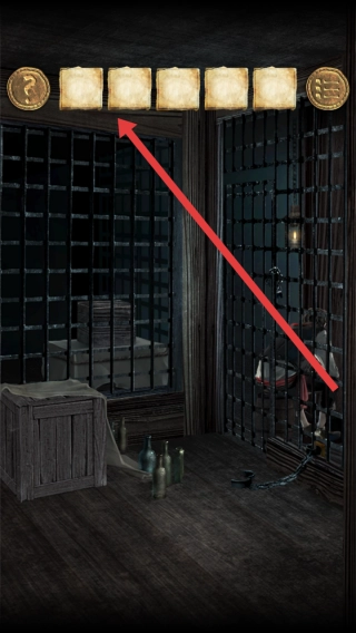 进入游戏中的牢房场景,留意铁栏、木箱、瓶子这类场景物件。当角色被铁栏困住后,得去探索场景里的各种元素,找到能帮助逃脱的线索,以此推动流程往下走。