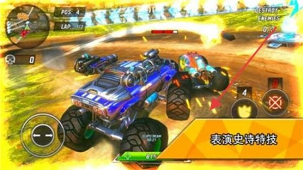 比赛时,瞅准合适的时机点击“表演史诗特技”,借助特技效果来获取加速效果、干扰其他对手,从而提升自己在竞速中的排名以及在比赛中的生存能力。
