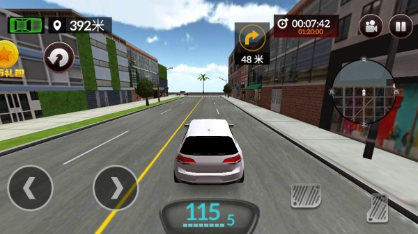 车辆的移动方向及漂移操作可通过左侧的虚拟方向盘进行控制,而加速与刹车功能则由右侧的按键分别管理。