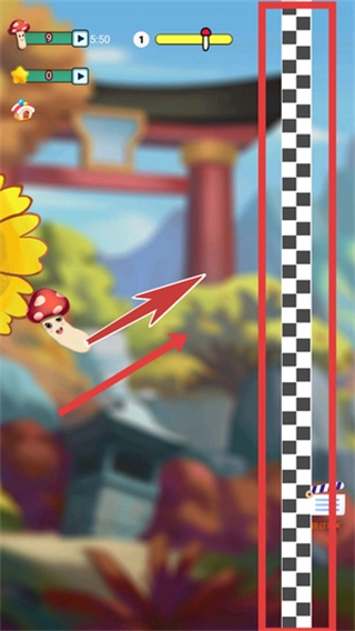 蘑菇顺利着陆后,要留意向日葵平台的摆动节奏,在黑白指示条抵达终点的理想时刻滑动屏幕,完成完美的衔接跳跃。