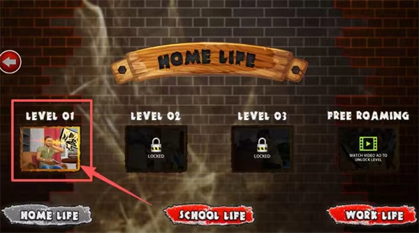 切换到深色砖墙的关卡选择界面后,点击红框标注的“Level 01”第一关入口即可开启拆除任务,若想提前解锁后续特殊关卡,也可以通过观看广告来实现。