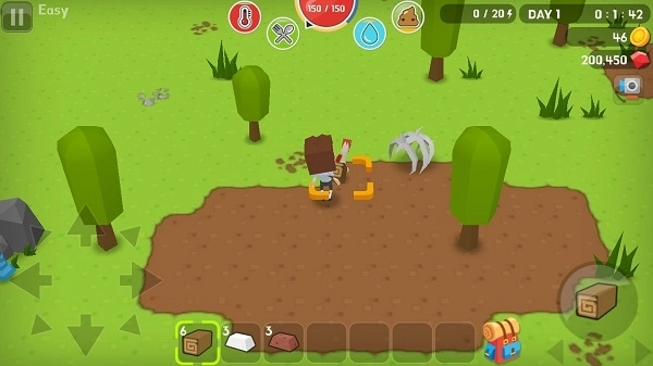 最关键的是先把武器制作出来,点击左右按钮就能切换到武器制作界面,用五个木头就能打造木剑,这样夜晚碰到邪恶生物时也能有自我保护的能力。当然,还可以制作木斧和木镐,这些都是前期必不可少的工具,有了它们,无论是挖矿还是砍树效率都会更高。