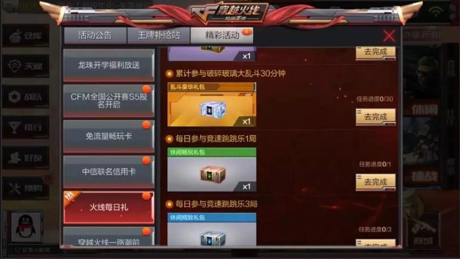 在“活动”“精彩活动”“火线每日礼”这些板块里,同样有大量钻石等待玩家们前来领取。