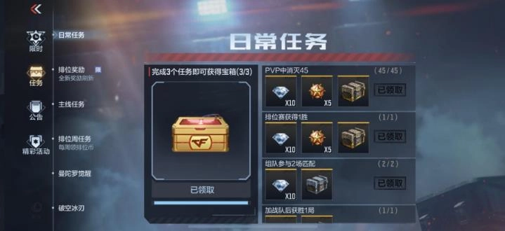 完成每日任务也能换取更多钻石,通常做完所有每日任务就能拿到40颗钻石。