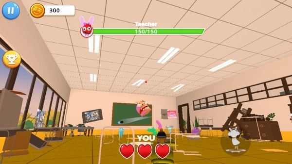 躲避老师的攻击,还要捡起地上的武器。