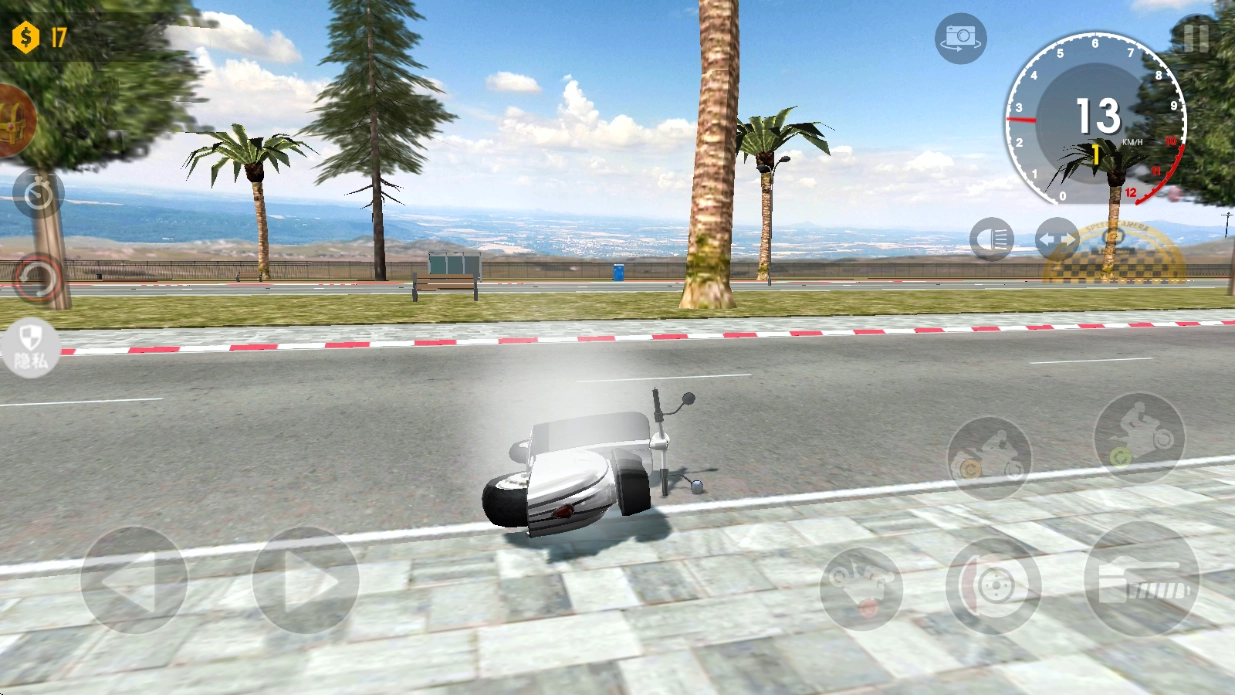 左手负责把控车身倾斜角度(当前轮离地时要记得微调身体重心来保持平衡),右手则需三指灵活操作油门、刹车与特技按键,尽情施展!要是在空中完成360度转体动作,再加上后轮滑行的技巧,最后撞飞路边的垃圾桶,就能触发“垃圾艺术家”的额外加分机制!一旦被警方通缉,还能巧妙利用立交桥之间的缝隙卡住紧追的警车,或者干脆跳上疾驰的火车,彻底甩开身后的追兵!