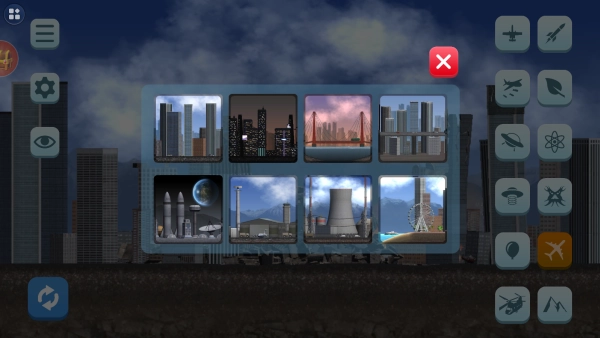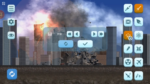 开始游戏后进入目标关卡,从右侧给出的道具里挑选合适的,对城市或建筑实施破坏操作。