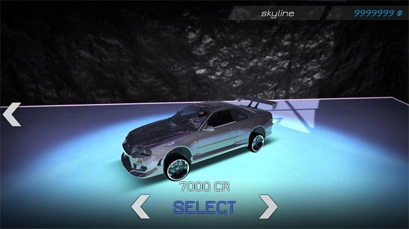 3、最后通过点击左右箭头来切换车辆,选好目标车辆后,点击select按钮即可消耗金币完成车辆解锁。