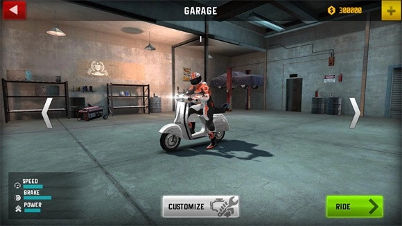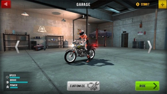 1、在初始界面能够挑选摩托车,点击左右方向的箭头就能进行切换。