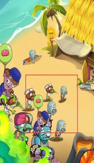 识别红框内的僵尸(包括护士僵尸和普通僵尸),要优先对它们发起攻击;同时利用植物的特性,比如减速、高伤害等效果,对僵尸的推进进行拦截,以此守护好阵地。