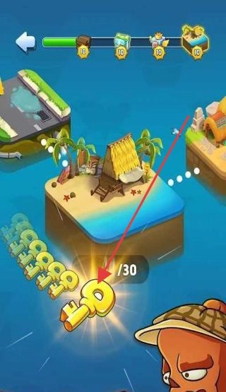 在地图界面中,点击带有10/30标识的箭头岛屿,消耗钥匙资源后,即可解锁新关卡,扩展防线以迎击更多僵尸。