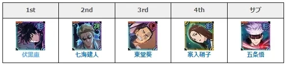 主线推图最强配队:五条悟+虎杖悠仁+东堂葵+七海建人+禅院真希