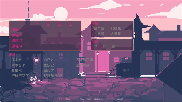 课程可能增加属性:炼金术(+1智慧)、战斗与防御(+1力量)、治疗术(+1魅力)、占星术(+1魅力)。