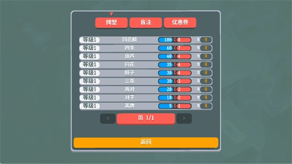 每一种牌型都可以获得对应的筹码分数