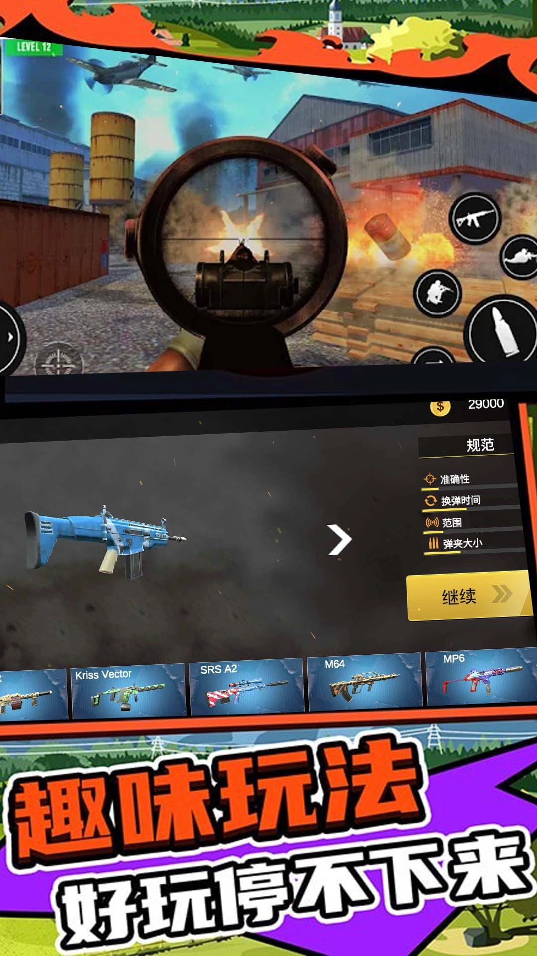 1、绝地战场求生单机版中击落不同战区的所有敌人,并证明你具备成为精英战士的条件。