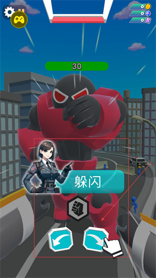 1、战斗过程中要利用底部的左右闪避按钮来规避敌方的攻击,另外界面上方的绿色条会展示剩余的可操作次数,你需要在次数用完之前达成对战目标。