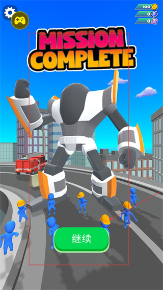 4、战胜敌人后会弹出任务完成的界面,能得到相应的货币奖励,点击继续按钮就能进入下一个任务关卡,不断推进来解锁更多内容。