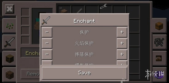 值得一提的是,借助附魔按钮,我们能够直接给物品施加附魔效果,不管是武器、工具,哪怕是草方块,都能体验到附魔带来的乐趣。