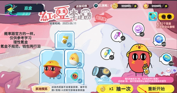 3、当右侧5个物品全部抽齐后,可解锁冰块中的红小豆;