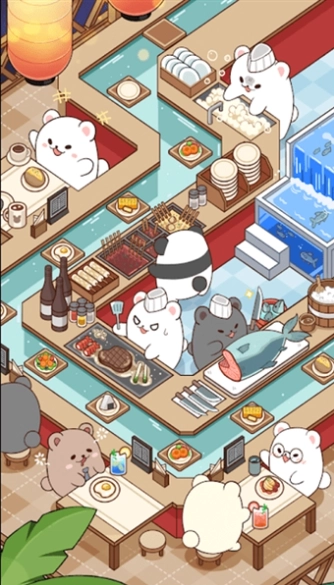 面包熊和我一起做饭(Bread Bear)是一款餐厅主题的模拟经营类游戏,你将在这个满是可爱熊熊的世界里经营一家美食餐馆,每次一打开手机,你就看见客人落座点菜,然后后厨的熊熊厨师就开始热火朝天的炒菜,服务员熊熊开始在店里奔波传菜、打扫卫生,超级有意思,看着它们忙碌的样子超级治愈~
