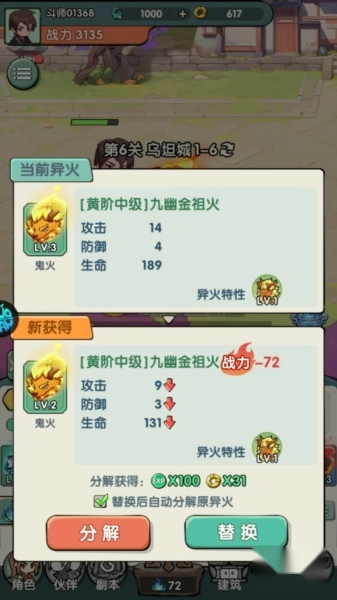 在游戏里,玩家能够借助熔炼异火的方式得到装备,以此来增强自身属性。要是得到了等级不高的异火装备,还能直接把它分解掉,从而获取经验与代金券的奖励。