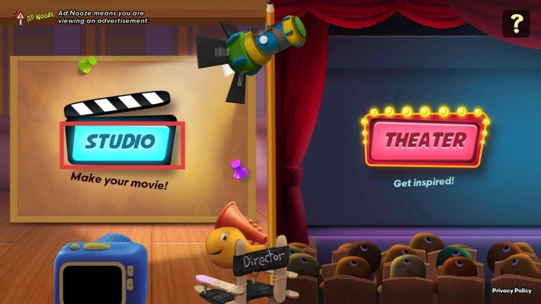 1、点击STUDIO进入创作环节,可先通过THEATER板块寻找灵感,借助界面提供的各项功能启动电影制作流程,提前规划好角色设定与场景架构,为后续的选角、拍摄等环节做好前期准备。