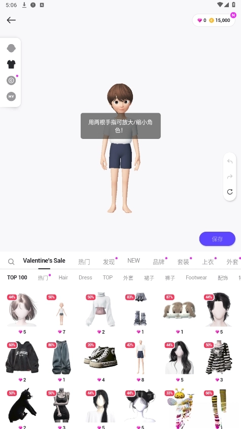 选择服装,鞋子,配饰,修改五官等等,点击保存即可