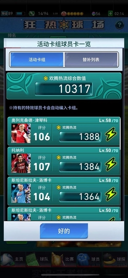 游戏会依据您球队里分数最高的组合来自动挑选球员上场,这会对最终得分产生影响。