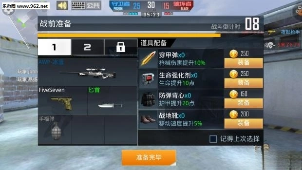 游戏仅允许使用手枪和刀具进行战斗,在准备界面会有相关提示。