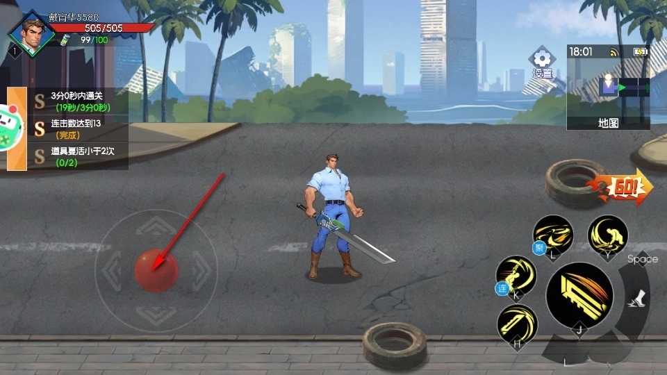 在游戏中我们滑动左边遥感的图标即可使角色移动。