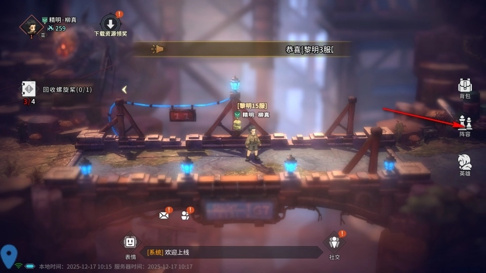 玩家进入游戏后,在界面右侧能找到阵容搭配的入口,点击该入口就能进入阵容界面。