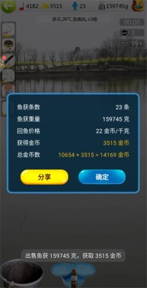 在钓鱼看漂安卓版里,不同渔场有着不同种类的鱼供玩家垂钓,而且不同鱼类以及不同重量的鱼都对应着不同的价格标准。