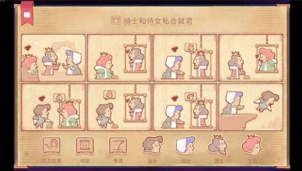 2、游戏中主要为了满足章节标题的剧情,剧情并没有标准的答案,可发挥自己的想象力,将下方的背景、人物等内容拖入中间的剧情框中;