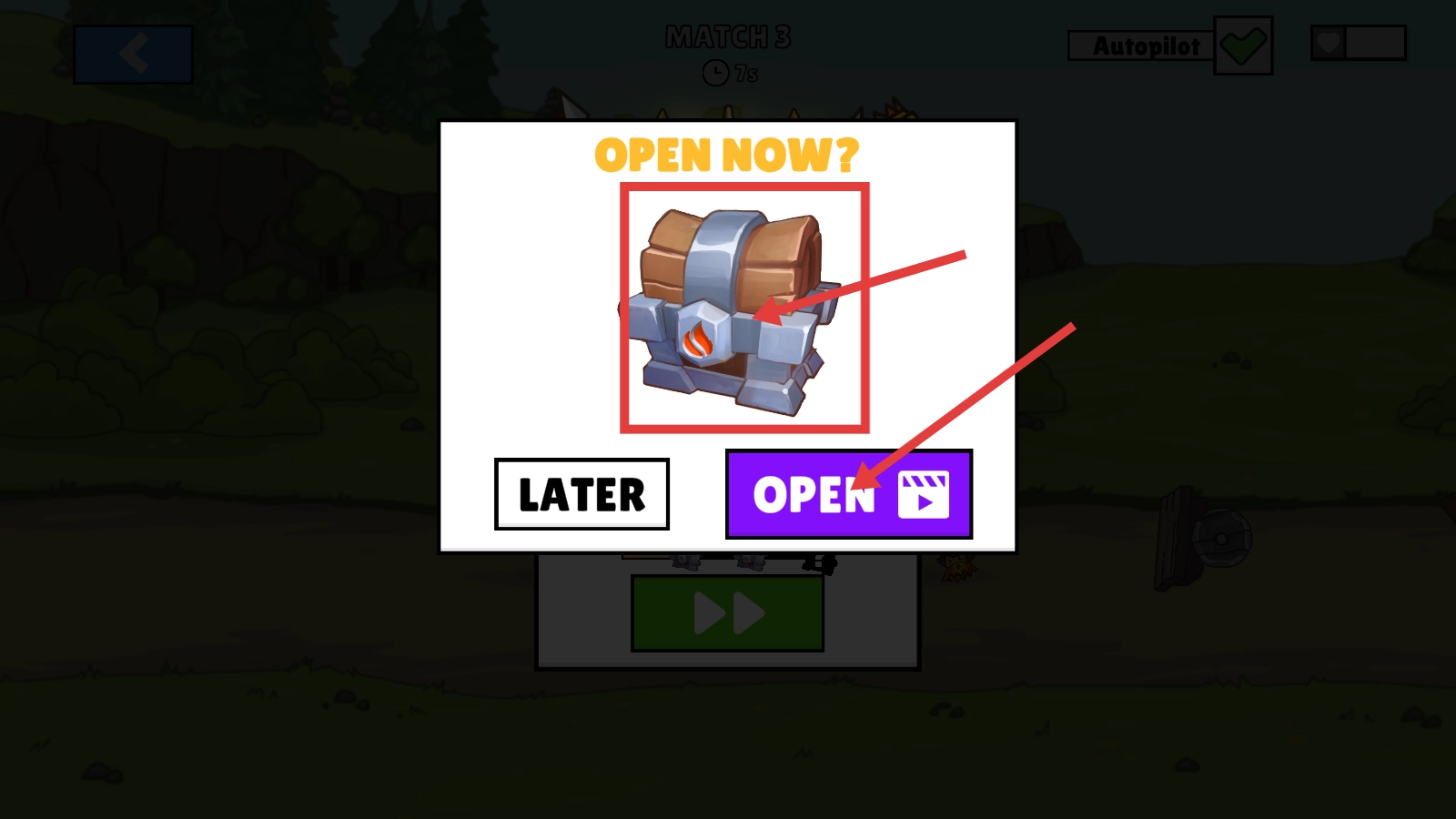 对战结束后,可以选择点击【OPEN】按钮来开启宝箱,获取新的部件,不断提升战车的性能,从而更好地应对后续的挑战。